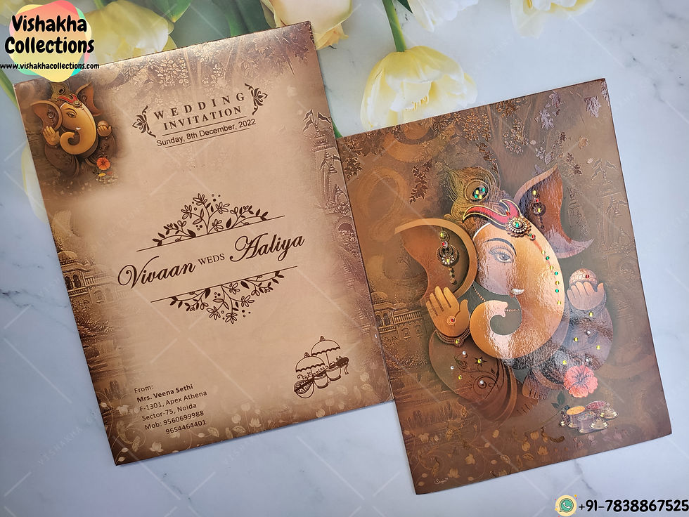 Brown Colour Bride And Groom Themed Ganesha Wedding Invitation Card