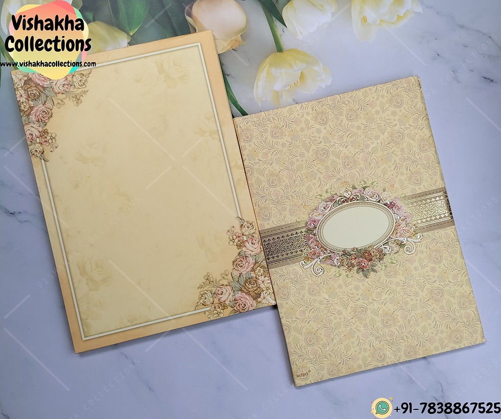 Beige Color Floral Designer Acrylic Couple Named Band Wedding Card